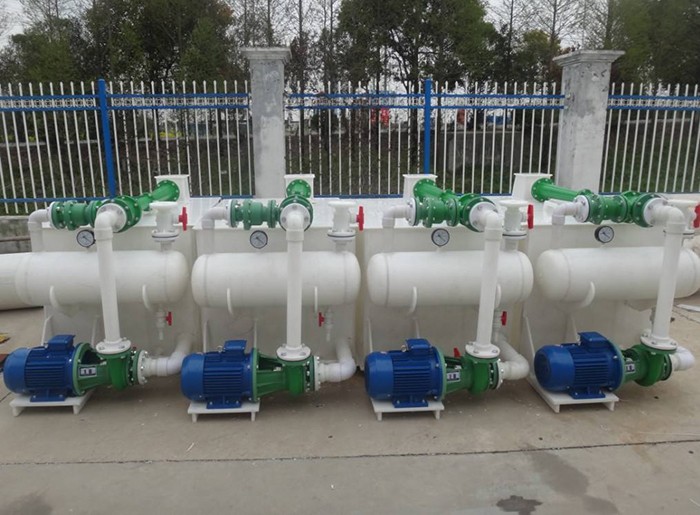 聚丙烯PP真空機(jī)組體積小,結(jié)構(gòu)緊可移動(dòng),噪音低,能耗低便于綜合利用。水汽串聯(lián)噴射真空機(jī)組,耗氣量小可獲得更高的真空度,工作穩(wěn)定,使用方便。在安裝使用前,須仔細(xì)檢查各部位緊固件是否松動(dòng),若有松動(dòng)須校正擰緊。開機(jī)前水池須加滿水,打開泵進(jìn)口閥,嚴(yán)禁脫水空轉(zhuǎn)及反轉(zhuǎn),以防止損壞機(jī)封和泵。停機(jī)前先放空或真空度降至0.092Mpa以下,然后停機(jī)以防真空度過高,倒吸易損壞止回閥,(如止回閥失靈,請(qǐng)打開止回閥蓋,清除雜物)。